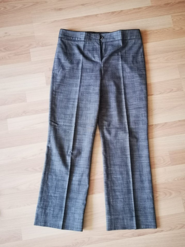 Gri midi boy, regular fit, kemerli kadın denim pantolon, ofis ve günlük sokak stiline uygundur.
