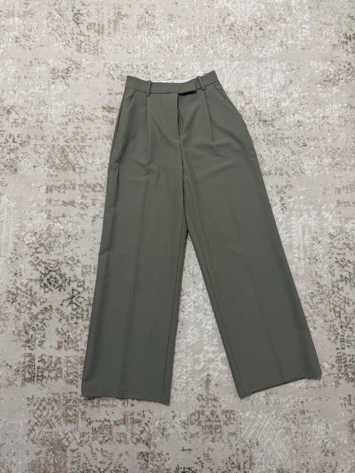 Gri midi uzunlukta, regular fit kadın pantolon. Düz, sentetik kumaştan, ofis ve gündelik şıklık için uygundur.