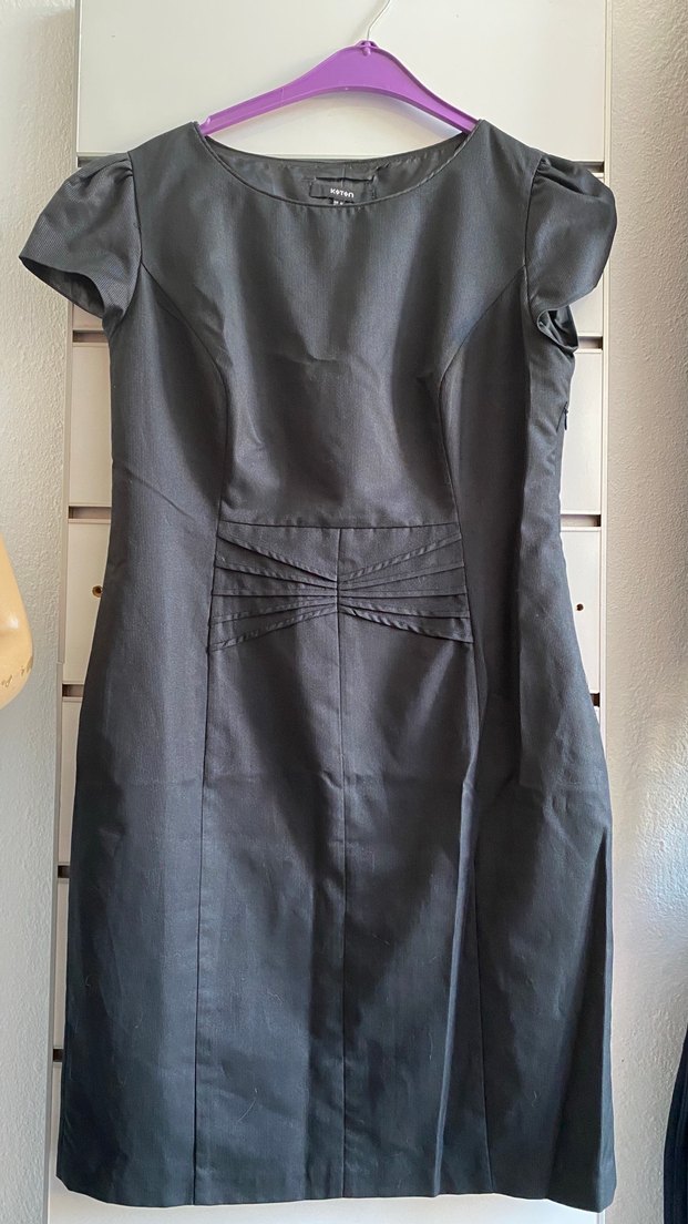 Gri renkte, midi uzunlukta, kısa kollu ve tek renk olan bu elbise, tekne yaka ve bel kısmında pile detaylara sahiptir. Ofis için uygundur. ✨2 kol arası 45 cm boy 90 cm