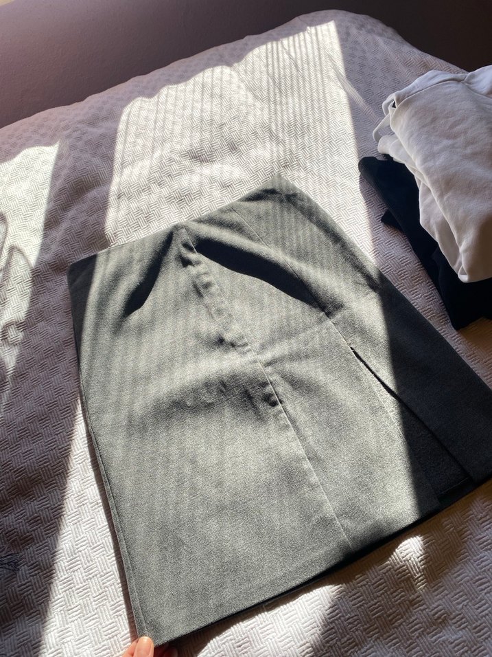 Gri midi kalem etek, regular fit ve piliseli detaylara sahip. Sentetik kumaştan üretilmiş, düz ve desensiz tasarımıyla ofis stiline uygun minimal bir model.
