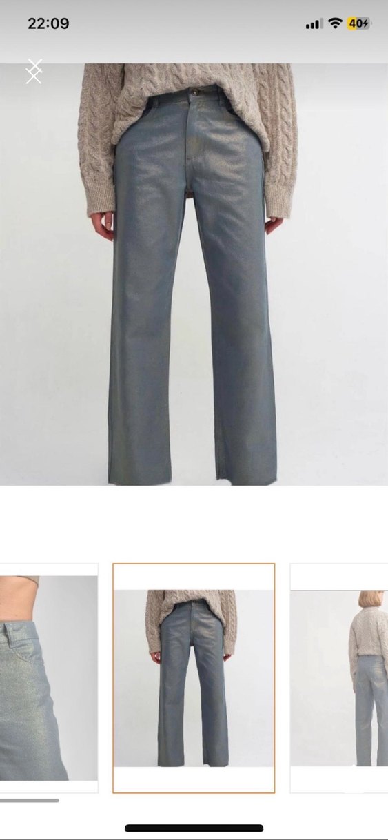 parlak simli Gri renkte, regular fit ve midi boy kot pantolon. Minimalist ve normcore tarzıyla günlük kullanıma uygun, desensiz ve kolay şıklık sunar.