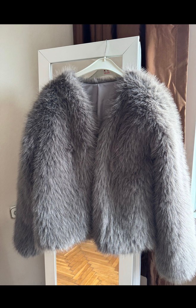 Gri midi uzunlukta, suni kürk detaylı yumusacık. bir kez giyildi 1700den 1100e indirdim