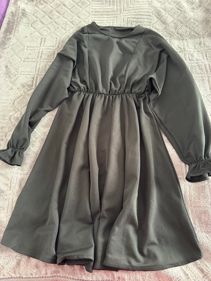 Gri midi uzun kollu, bol kesim gotik tarzda, desensiz kadın elbisesi. 38 beden hem elbise hem tunik tarzı olarak kullanılır bir kaç kere giyildi