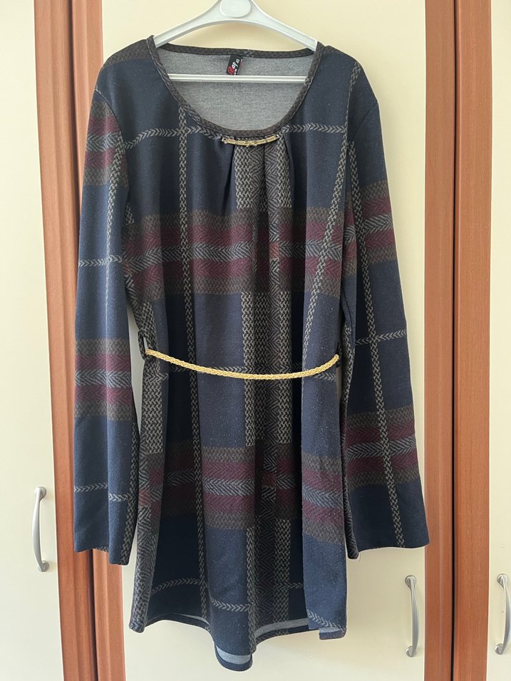 Gri midi uzun kollu, yuvarlak yakalı, kemerli ve bol kesim tunik. Yumuşak sentetik kumaştan üretilmiştir, rahat ve günlük kullanıma uygundur.