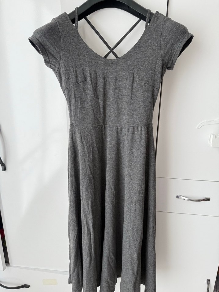 Gri Midi V Yaka İnce Askılı detaylı kısa kollu Elbise