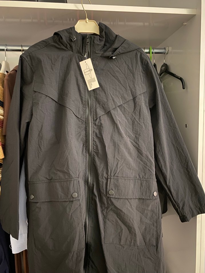 Gri midi uzunlukta, sentetik kumaştan yapılmış yağmurluk. Notlu yaka, uzun kollu ve fermuarlı detaylarla sokak stiline uygun, günlük kullanıma ideal.