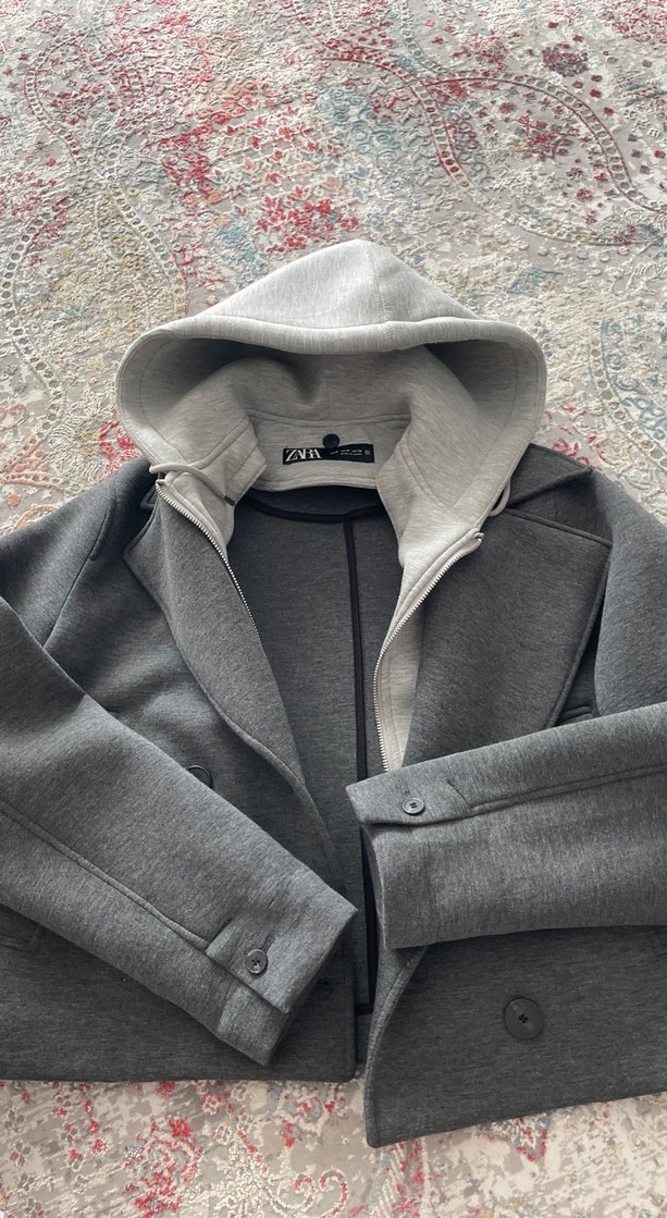 Gri Midi Zara Marka Kapüşonlu Ceket