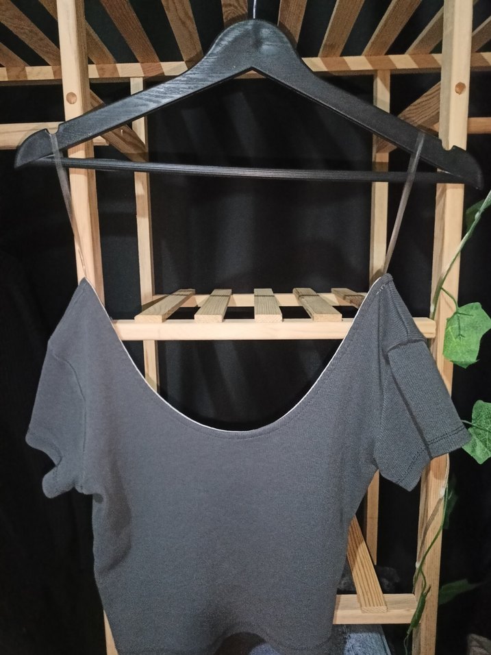 Gri Mini Crop Boat Neck Dar Kesim Bluz