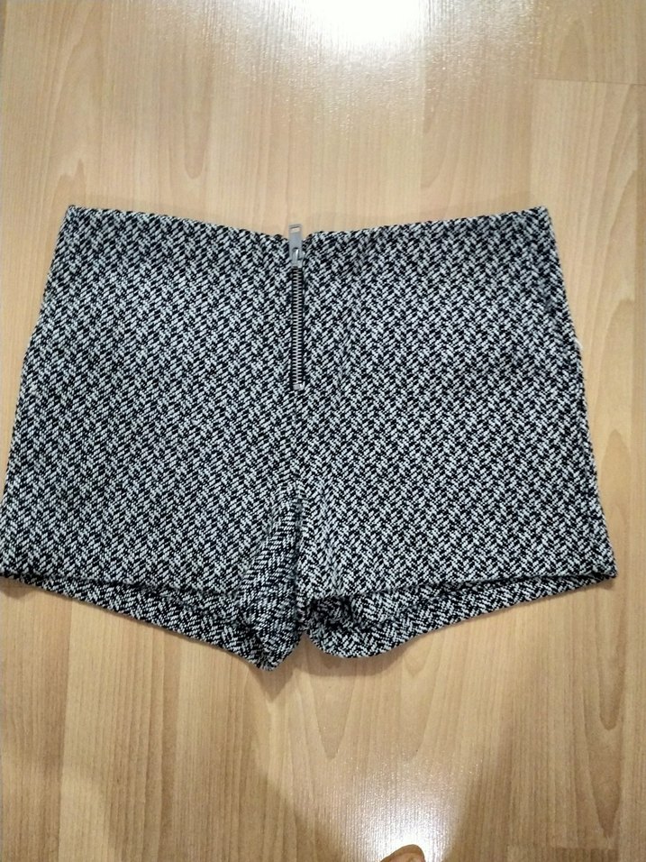 Yumuşak sentetik kumaştan, fermuarlı gri mini dar kesim şort. Günlük kullanım ve rahat sokak stili için uygundur.