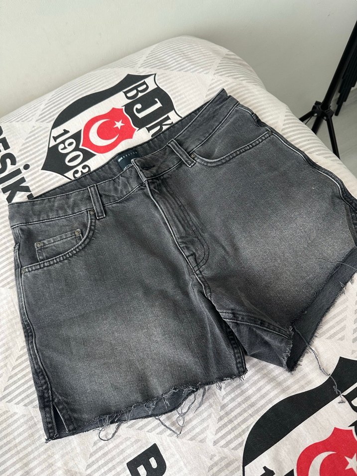 Gri renkli, rahat kesim ve kesik uçlu mini denim şort. Günlük kullanıma uygun, kolay şıklık sunan rahat ve trend bir model.