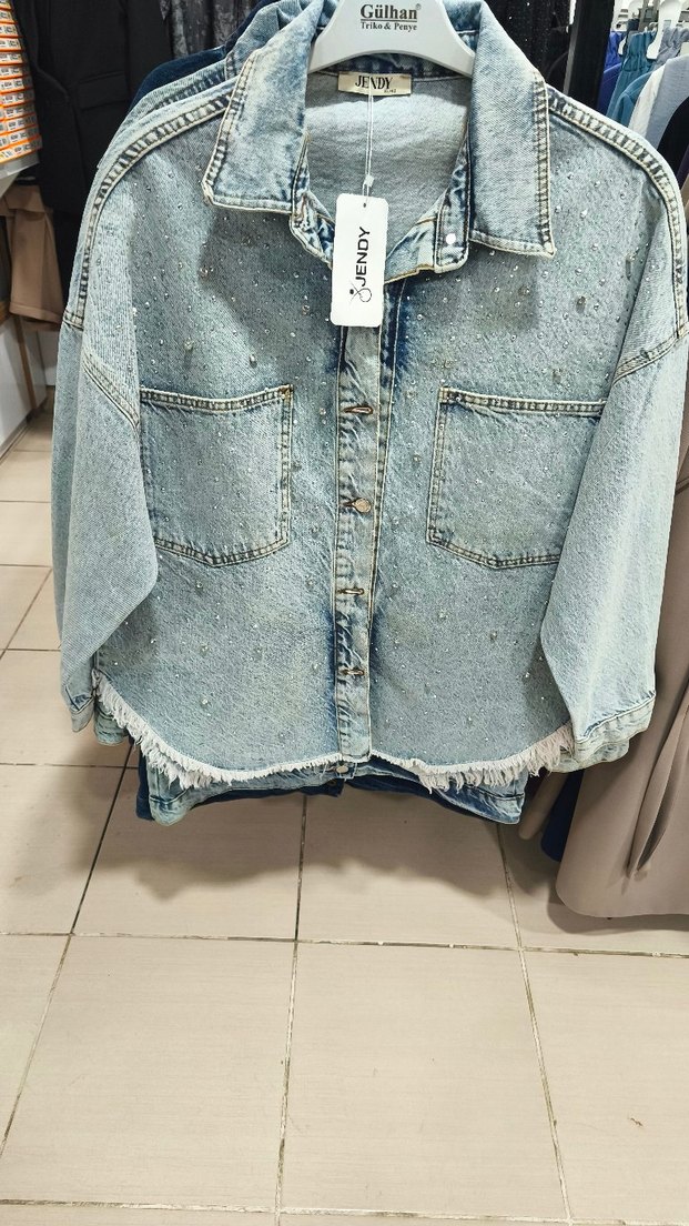 Gri renkli, düğmeli, uzun kollu ve kısa kesim olan bu denim ceket, bol kesimi ve yırtık alt kısmıyla rahat bir sokak stili sunar. bedenleri 40-42