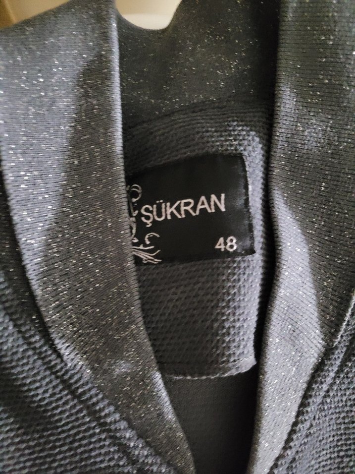 Uzun kollu, fermuarlı ve keskin bisiklet yaka detaylı antrasit kadın ceket-ferace Yumuşak sentetik kumaştan Marka: Şükran, beden 48.