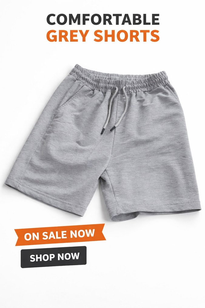 Gri Mini erkek Şort Pamuklu Rahat Kesim