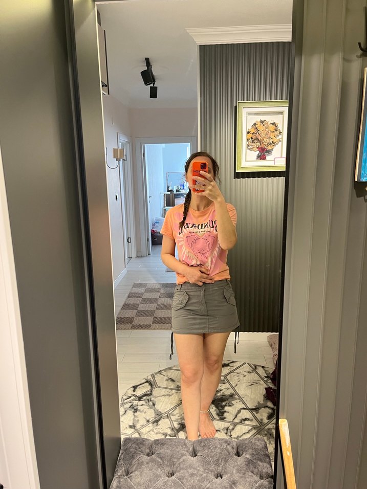 Günlük kullanıma uygun, sokak stilinde gri renkli, oturaklı mini etek. Rahat ve zahmetsiz şıklık sunar.