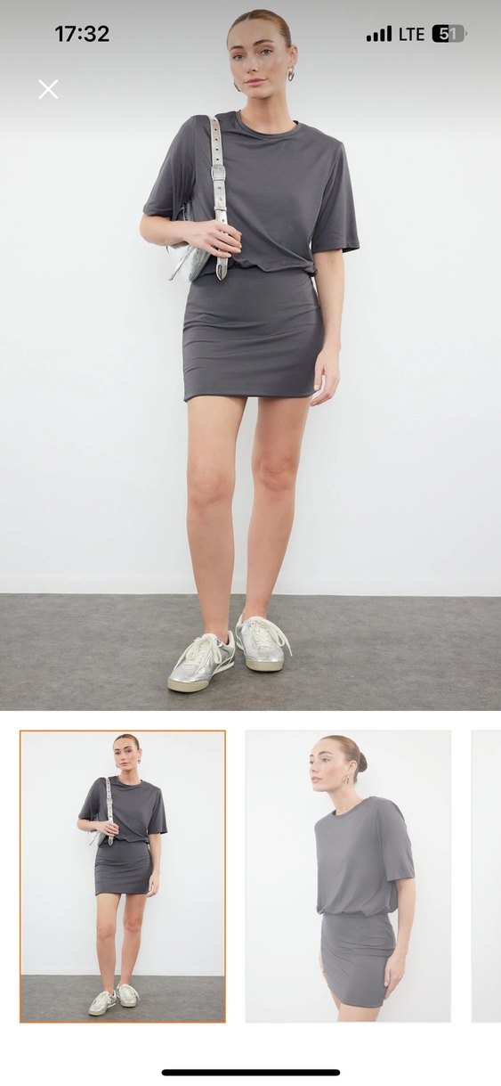 Gri renkte, ince kesim ve desen içermeyen bu mini etek, sentetik kumaştan üretilmiştir. Minimalist ve normcore tarzıyla günlük kullanım için uygundur. ✨