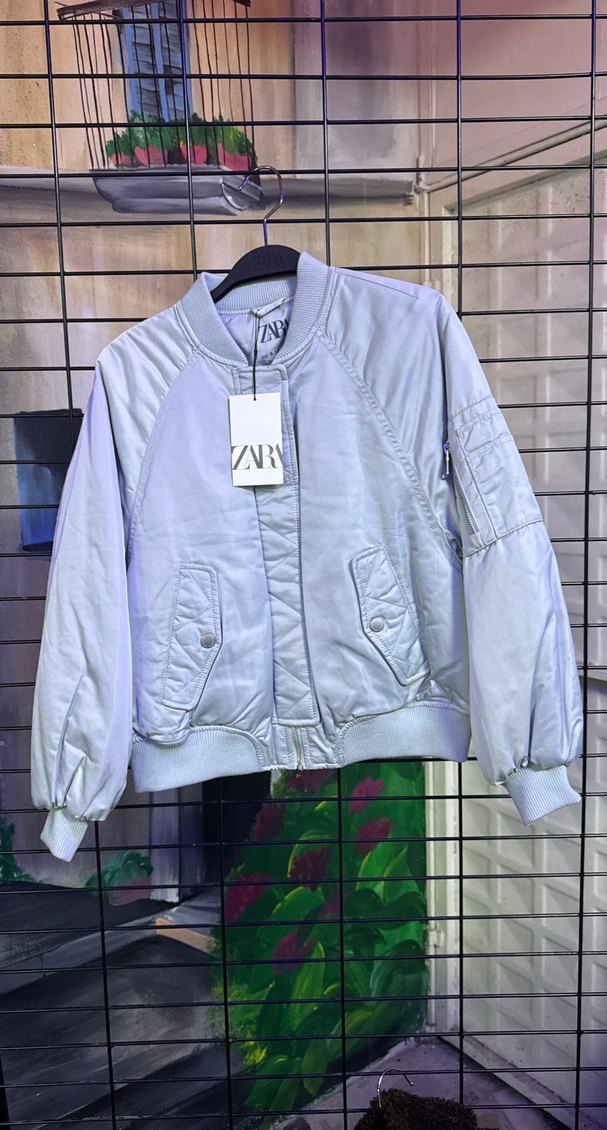 Gri renkli, kısa boy kadın ceketi uzun kollu, bisiklet yaka ve fermuarlı kapamalıdır. Sentetik kumaştan yapılmış, düzenli kesim ve fermuarlı cepleri vardır. ZARY markası etiketindedir.