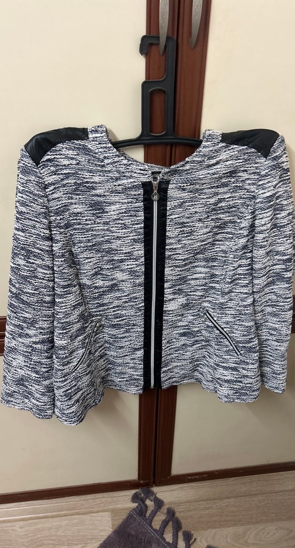 Bu dar kesim gri kadın ceket, uzun kollu ve fermuarlı ön yapıya sahiptir. Sentetik kumaştan üretilmiş, yaka tipi kesik yaka olup kısa boydadır, günlük rahat kullanıma uygundur.
