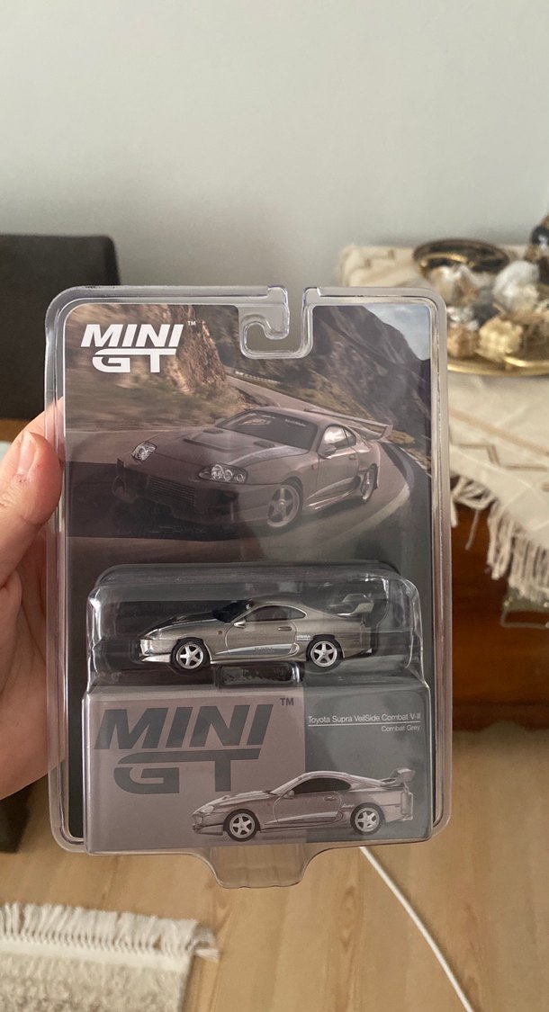 Gri Mini GT oyuncak araba, Toyota Supra Spor Araç Control V2 modelidir. Şık tasarım ve gerçekçi detaylara sahiptir.1.64 kutulu sıfır ürün