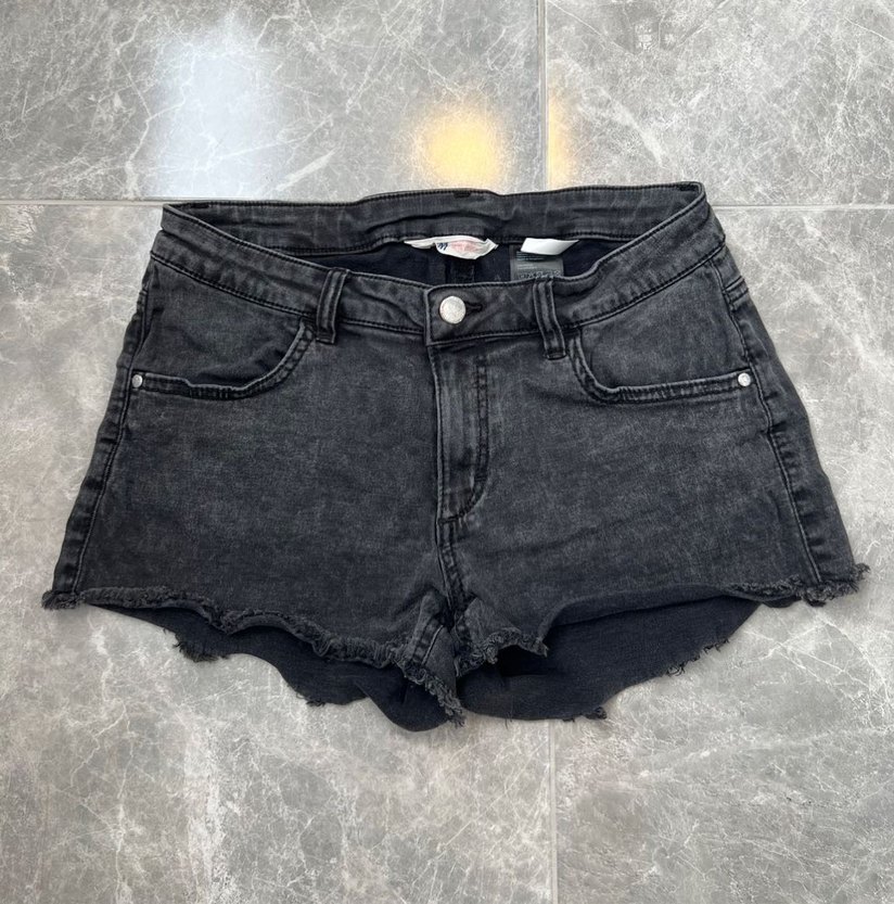 Düğmeli ve kesik uçlu, gri mini kadın denim şort, gündelik sokak stiline uygun grunge punk tarzında rahat bir seçenek sunar.