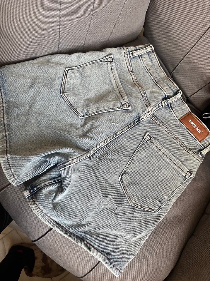 Gri renkli, bol kesim ve desen içermeyen mini denim şort, rahat sokak stili için zahmetsiz şıklık sunar.