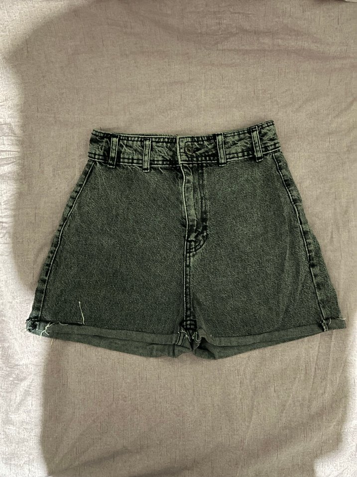Gri renkli, ve bol kesim mini kot şort, günlük kullanım için uygun sokak stiline sahiptir.