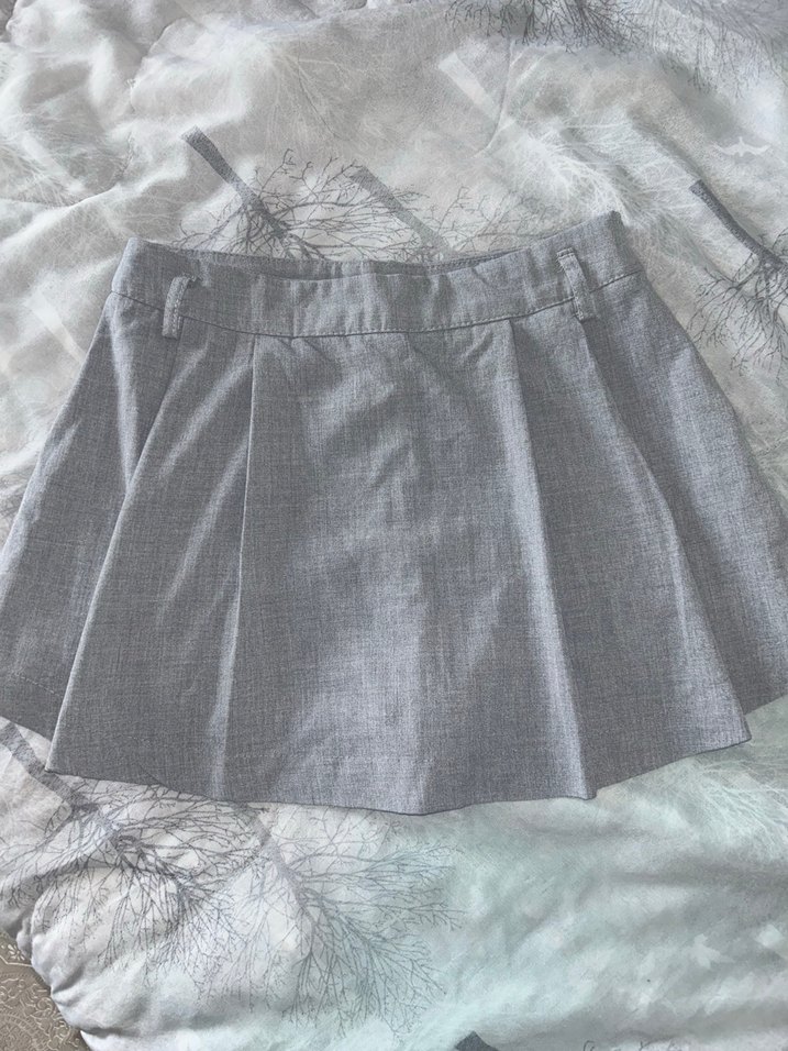 Gri Mini Pilili Keten Şort etek