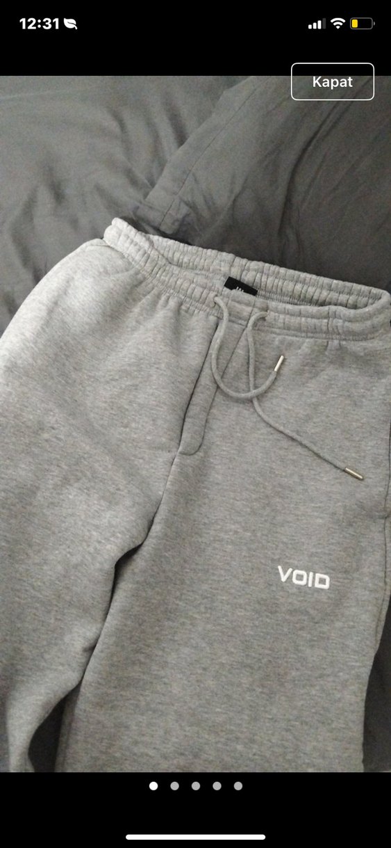 Yumuşak ve sıcak kumaştan, rahat kesim kısa uzunlukta gri eşofman altı. Minimalist tasarımlı, 'VOID' baskılı, günlük rahat sokak stili için uygun.