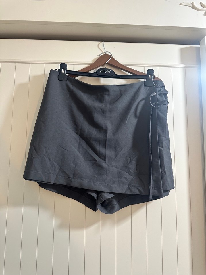Gri, kuş gözü detaylı mini şort etek. 46 beden Trendyol curve