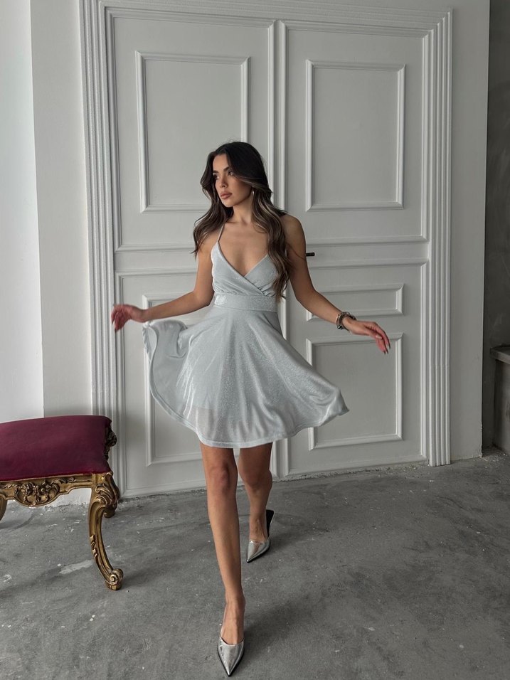Gri Mini Straplez Şeffaf Kadın Elbise