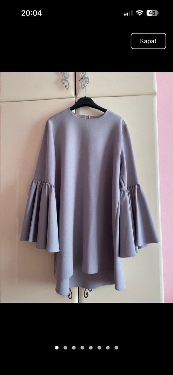 Gri mini tunik, uzun kollarda volan detayları ve yuvarlak yakaya sahip. Rahat kesimli ve yumuşak sentetik kumaftan, günlük kullanım için uygun. ️görsellerde kusurları mevcuttur.