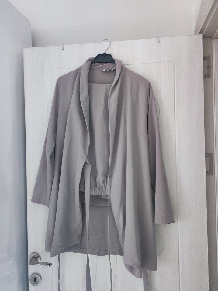 Gri Mini Uzun Kollu Kadın alt üst ceket takım