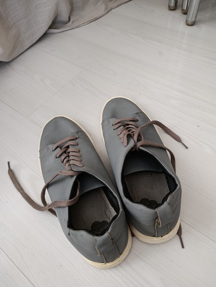 Gri renkli, minimalist sokak stili için uygun erkek bağcıkları. Ayakkabılara sade ve şık bir dokunuş sağlar.