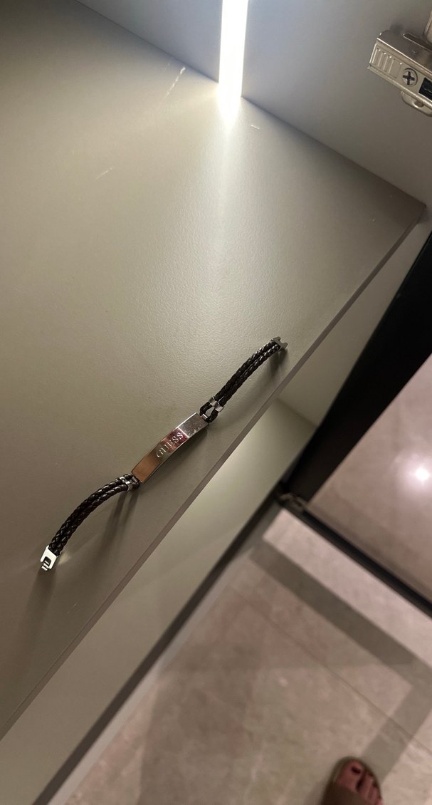 Gri örgülü tasarıma sahip erkek bileklik, metal tokasıyla minimalist ve rock punk tarzını birleştiriyor. Modern görünümlü bir aksesuar.