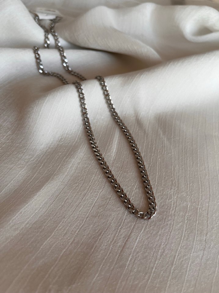 Gri tonlarda, minimalist tasarıma sahip erkek kolye, sade ve temel görünüme uygun, çağdaş stilde bir aksesuar. ⚙️