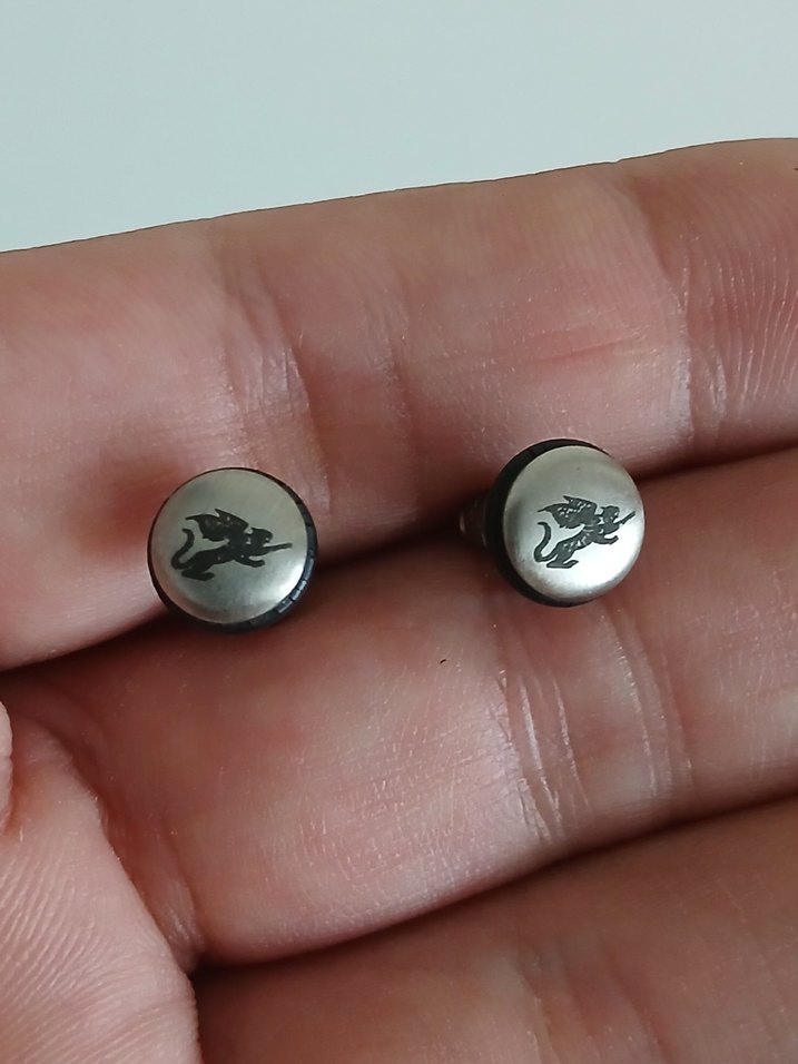 Gri renkte, minimalist ve biker tarzı erkek küpeleri, üzerlerinde küçük ejderha motifi bulunur. Rock punk havası için uygun.
