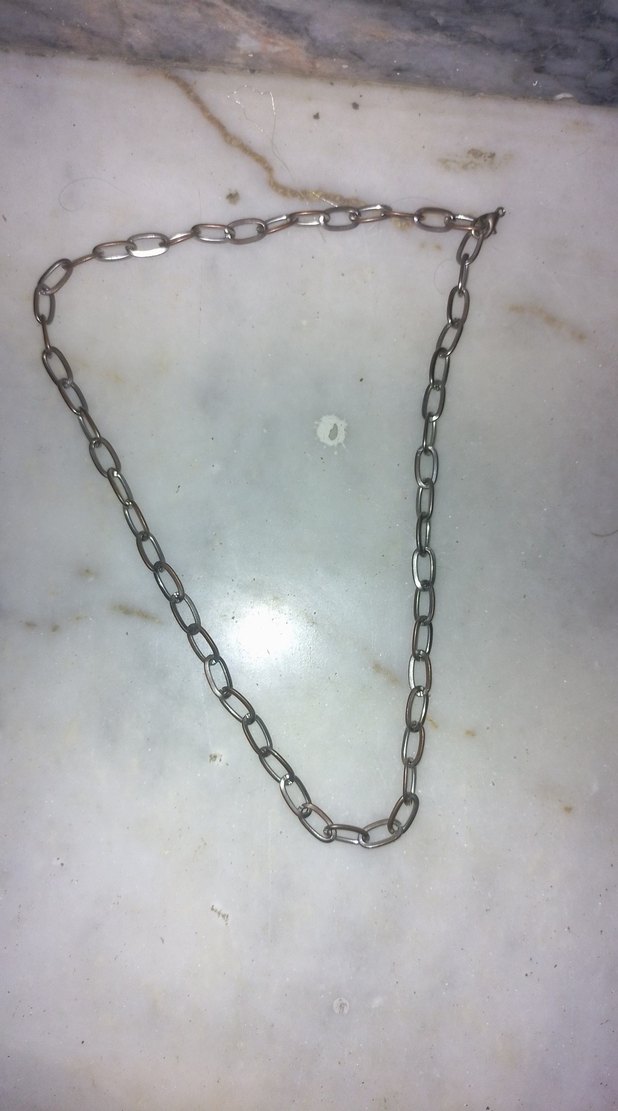 Gri renkte, uzun halkalı minimalist erkek zincir kolye. Sade ve temel tasarımıyla günlük kullanıma uygundur.