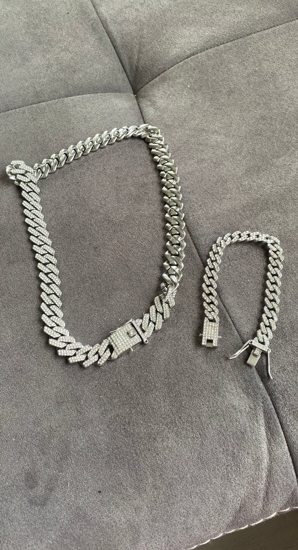 Gri renkli, minimalist tarzda erkek zinciri ve bileklik seti. Düz tasarımlı, sağlam toka ile basic görünüme uygun.