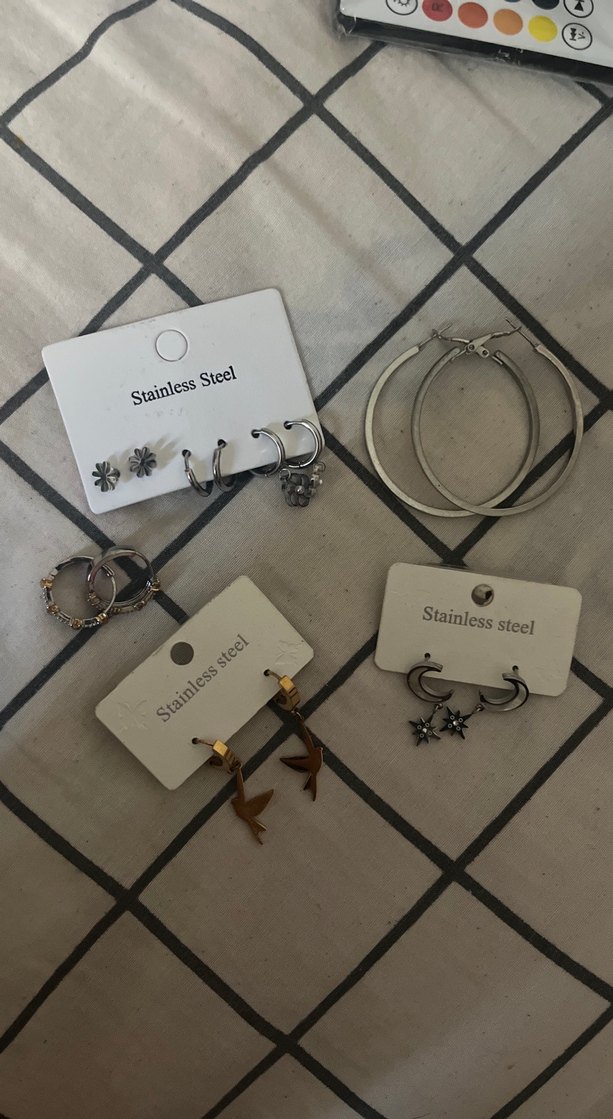 Gri Minimalist Mini Boncuklu Çelik Küpeler
