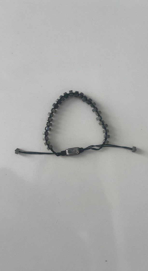 Gri boncuklarla siyah ayarlanabilir ipten yapılmış erkek bileklik, minimalist ve rock punk tarzını birleştirir. İnce ama dikkat çekici bir görünüm sunar. ⚡