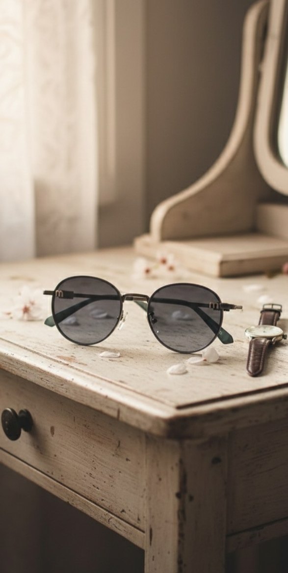 Gri yuvarlak güneş gözlüğü, minimalist ve retro tarzda, bohem ve hippie stilleri için uygun. Zahmetsiz şıklık ve ince karşı kültür havası sunar. ️