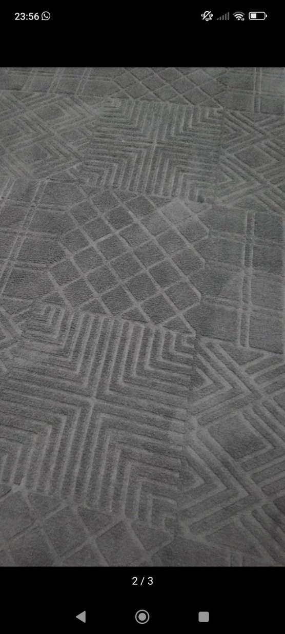 Gri renkte, çağdaş tarzda ve hafif geometrik dokulu modern bir welsoft halı örtüsü 6 M2 lastikleri sökülüp overlok çekildi