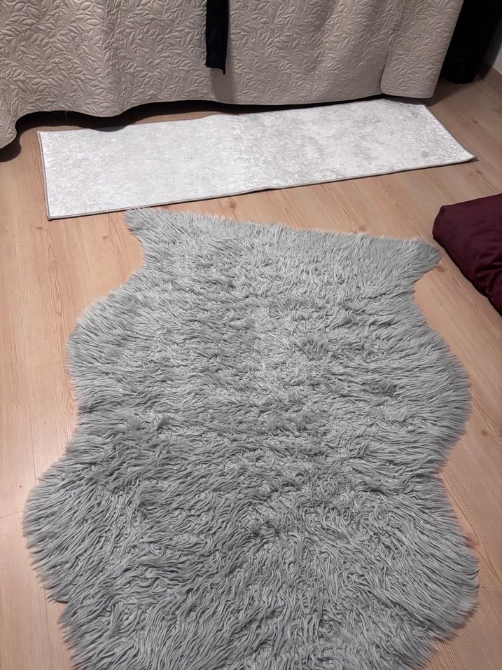 Gri renkte, modern tarzda, düz desensiz, yumuşak ve tüylü dokulu halı, her odaya konfor ve şıklık katar.