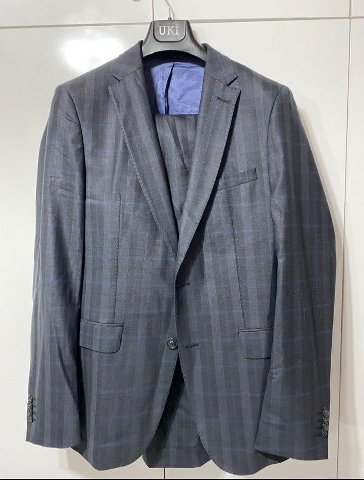 Bu erkek takımı, gri renkte modern klasik tarzda, normal boyda ve düğmeli kapamaya sahip. Notch yaka ve uzun kollu, klasik şıklığı yansıtıyor. İş ortamı için uygun.