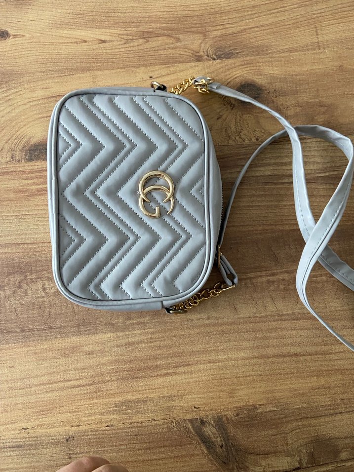 Gri deri kadın çantası, tokalı ve yılan derisi desenli. Modern klasik tarzda, günlük kullanıma uygun.