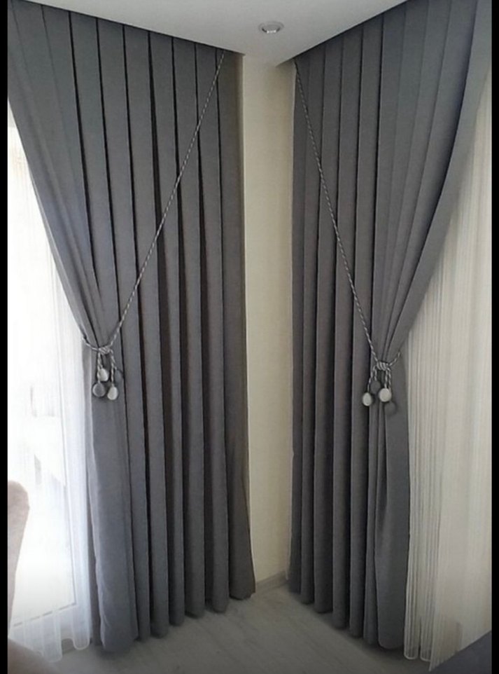 Gri renkte, sık pileli modern klasik tarzda, yumuşak kumaşlı ve dekoratif bağcıklı perdeler. İki ayrı bağcığı vardır 2 kez yıkandı sorunsuz temiz şuan kullanılmıyor katlı paketli şekilde duruyor 100*2.50 eni boyu