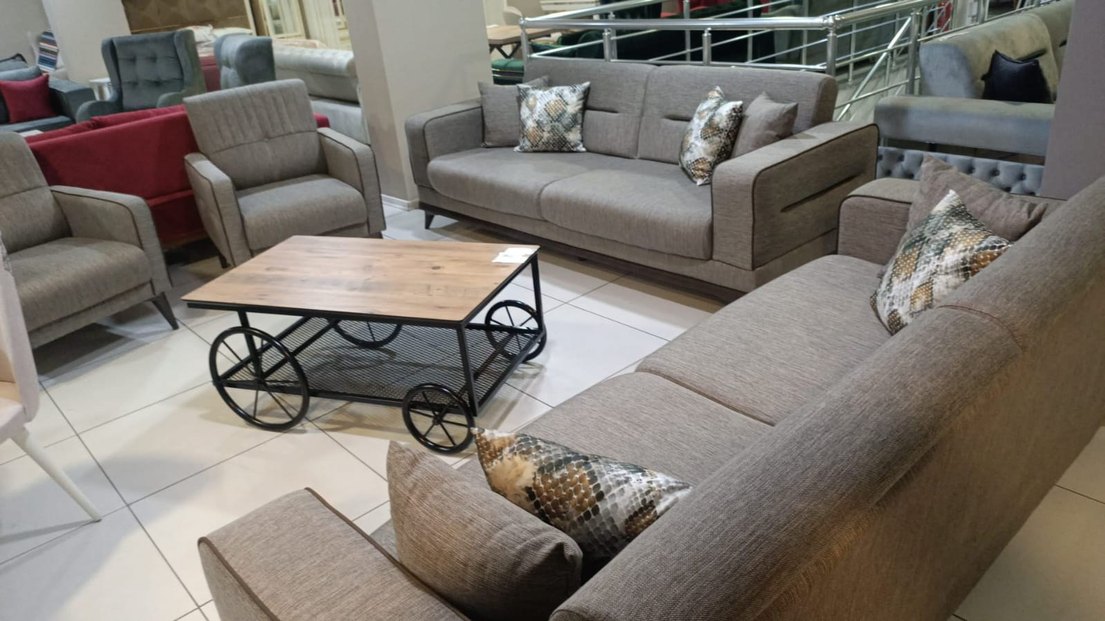 Gri renkte, yumuşak kumaş kaplı modern tasarımlı koltuk takımı. sehpa hariçtir. ️