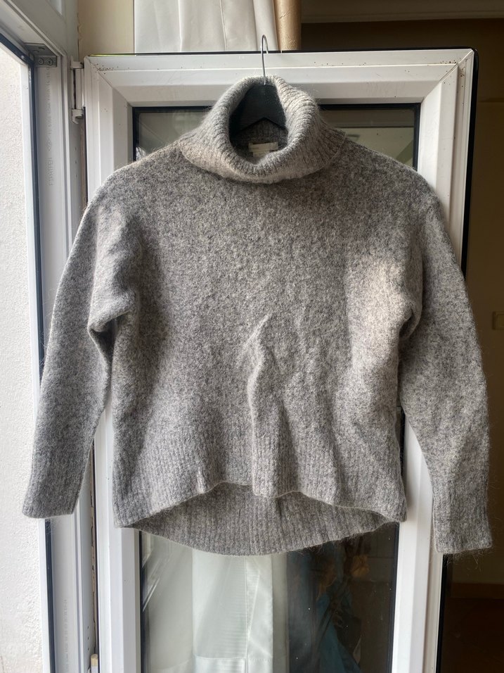 Moher/mohair yünü ve normal yün karışımı. Oldukça sıcak tutar ve yumuşaktır. 1 kez giyildi kusuru yoktur