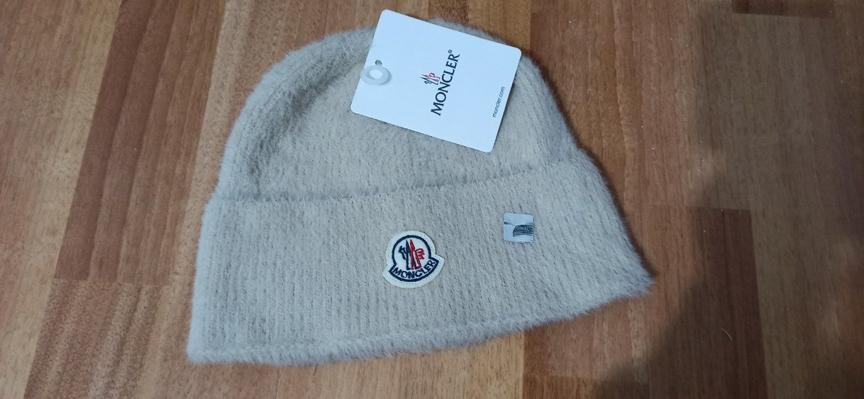 Yumuşak fleece kumaş ve Velcro detayıyla gri Moncler kadın bere, rahatlığı sokak modasıyla buluşturuyor.