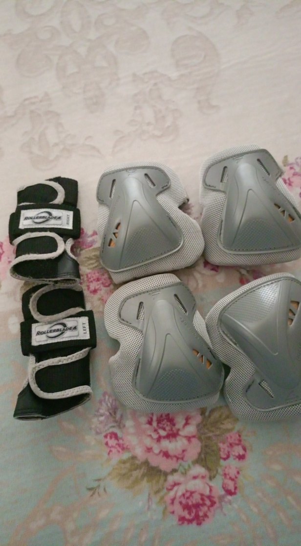 Gri renkte, polar malzemeden yapılmış ve cırt cırtlı kapanışı olan motokros dizlik ve bileklik seti.