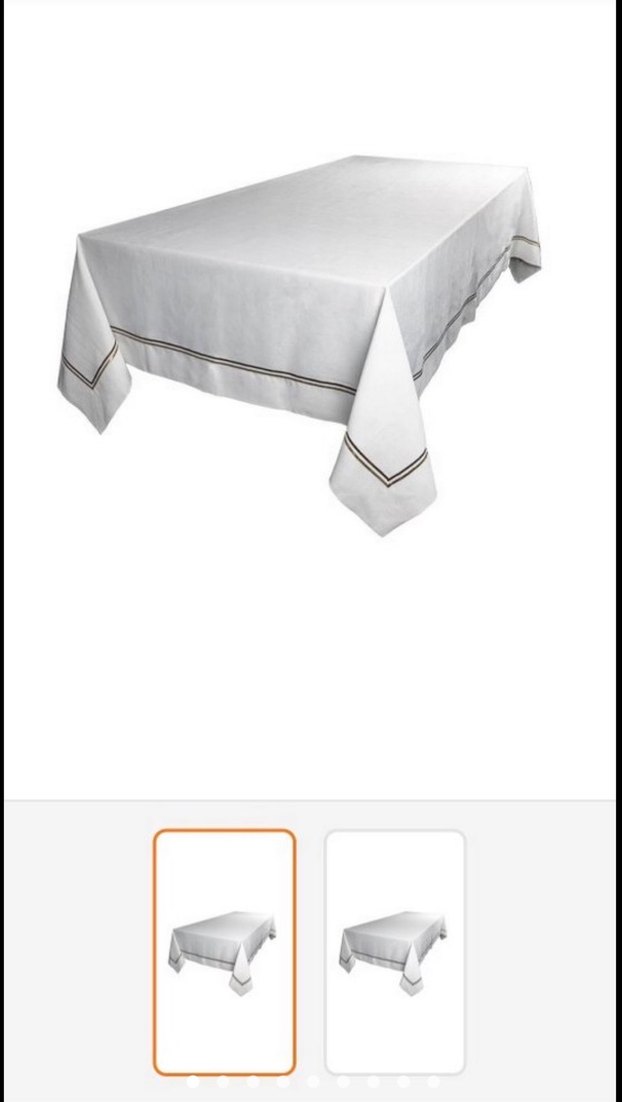 Gri nakış detaylarıyla süslenmiş beyaz masa örtüsü, klasik bir görünüm sunar.